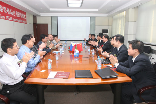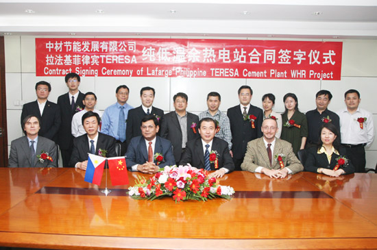 April in Beijing,that spring is very much in the air. Sinoma Energy Conservation Ltd. has signed the EP contract with Philippine Lafarge Teresa Cement Company for low-temperature waste heat power generation project since first cooperation with Lafarge Group for its global WHR program at last year. This moment is the first time that Lafarge all adopting Chinese-made WHR system at their overseas plants and it also shows their confidence in WHR power generation technology from Sinoma-EC.