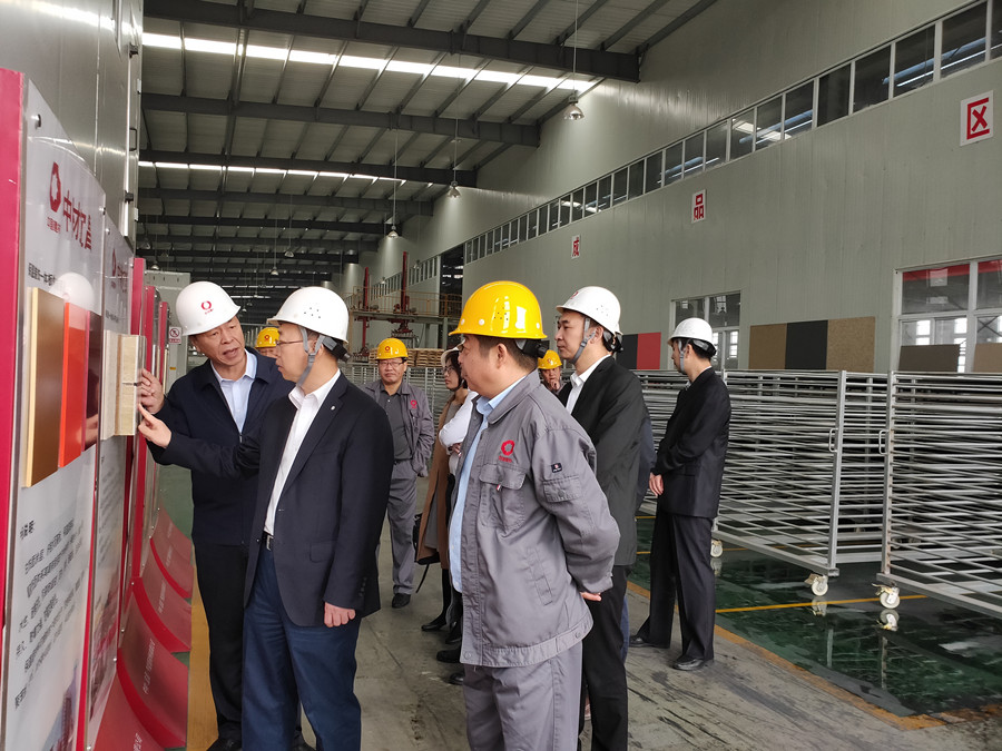 Mr. Chang Zhangli and his entourage went deep into the calcium silicate board production workshop, painted board production workshop, and product exhibition hall to learn more about the performance characteristics of calcium silicate board, the equipment level of the production line, core technology, product energy consumption, and market share. He also heard the special report of Mr. Zhou Shaozong, GM of Sinoma Energy Conservation (Wuhan) Co., Ltd., on the development of Sinoma EC’s energy-saving calcium silicate board industry.