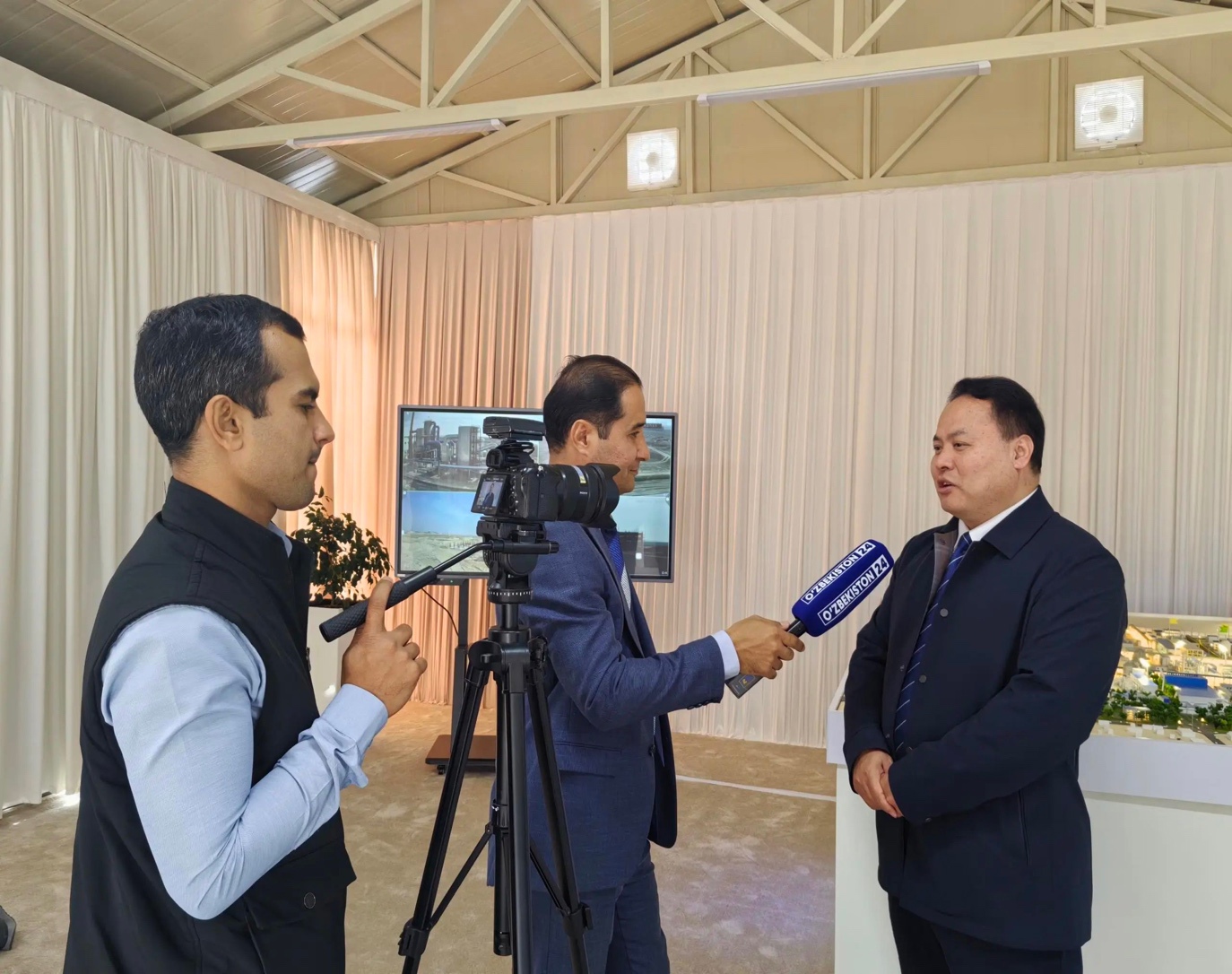 In the interview, Liu Xin once again introduced the development and achievements of China National Building Materials Group and Sinoma Energy Conservation, with a particular emphasis on the promising prospects of the group's and Sinoma Energy Conservation's advantageous businesses in Uzbekistan. He stated that they will fully utilize the advantages of the group and Sinoma Energy Conservation in the fields of new materials, clean energy, energy conservation and environmental protection to contribute to the green and low-carbon development of Uzbekistan.